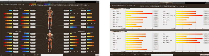 最新型の3D姿勢歪み分析システムで身体を4方向から撮影するだけで生活習慣の癖からくる身体の左右の傾きや骨盤の傾き、身体の歪みからくる筋肉の緊張や状態を「見える化」する事でご自身の身体を一目で知ることができます。